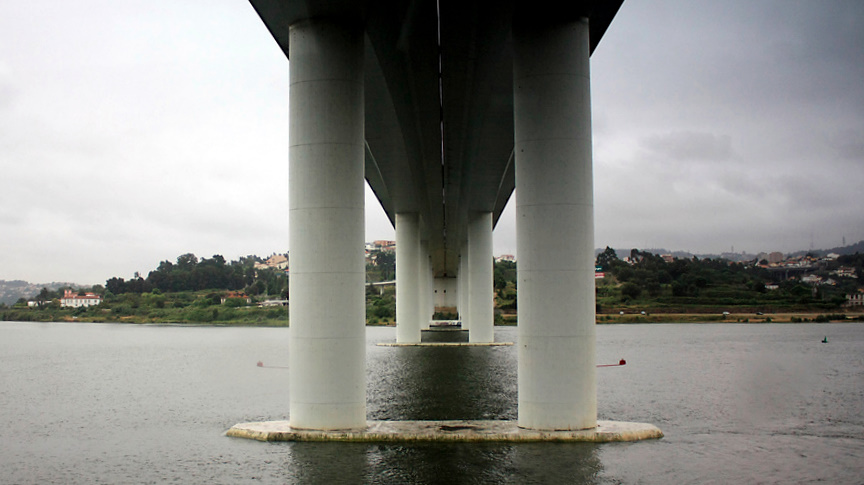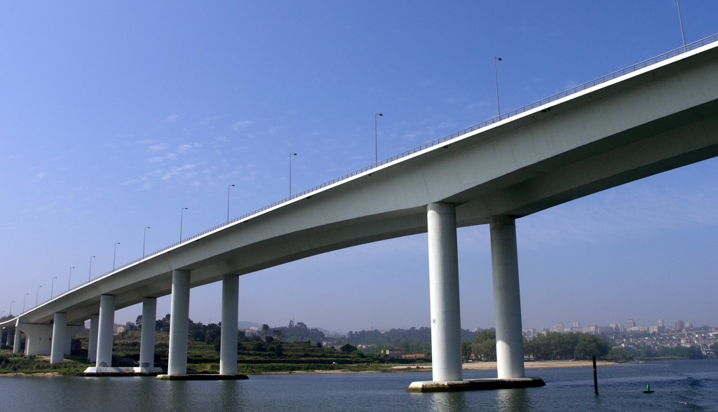 El puente escogido por la Direcção de Pontes de la Junta Autónoma das Estradas es un proyecto del ingeniero António Reis, que, entre otras alternativas, propuso un viaducto a cota relativamente baja, definiendo ocho vanos, de los cuales los dos principales tienen 150 m de longitud. En realidad, son dos viaductos gemelos construidos con hormigón armado pretensado, albergando cuatro carriles de tráfico en cada sentido.