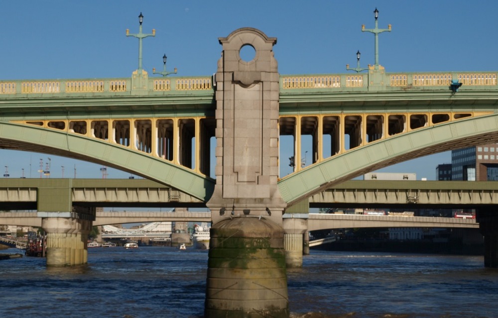 nombre Southwark Bridge • fecha de construcción 1921 (Siglo XX) • personas involucradas en diseño y construcción Basil Mott, Ernest George • ubicación Río Támesis, Londres, Inglaterra, Reino Unido • tipología Puente de Arcos • estado En uso